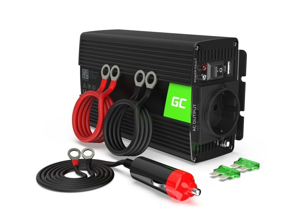 Green Cell® Car Power Inverter z 12V na 230V je zařízení, které umožňuje převod stejnosměrného napětí z 12V baterie na střídavé napětí 230V. Tento převodník je schopen poskytnout stálý výkon až 500W se špičkovým výkonem až 1 000W. Jedná se o zařízení s modifikovanou sinusovou vlnou, což znamená, že je vhodné pro provoz osvětlení, topných těles, nebo zařízení se spínaným zdrojem (notebooky, počítače nebo nabíječky).